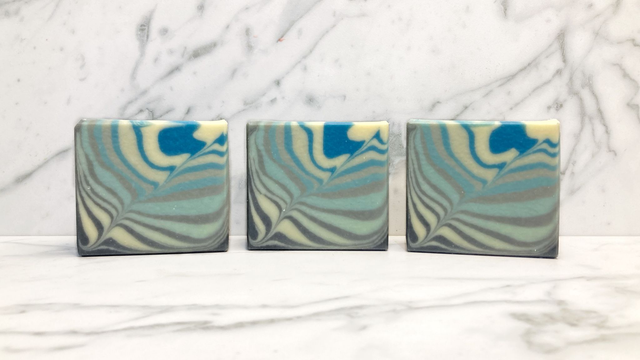 A swirl of blue, teal, and soft grey echoes the quiet grace of winter foliage, crisp air, pale skies, and the hush of frost beneath foot. Scented with essential oils of lemongrass and patchouli, brightened by lemon and grapefruit, and grounded in cedarwood, the fragrance is fresh yet earthy, like a breath of winter woodland, inspired by frosted landscapes.